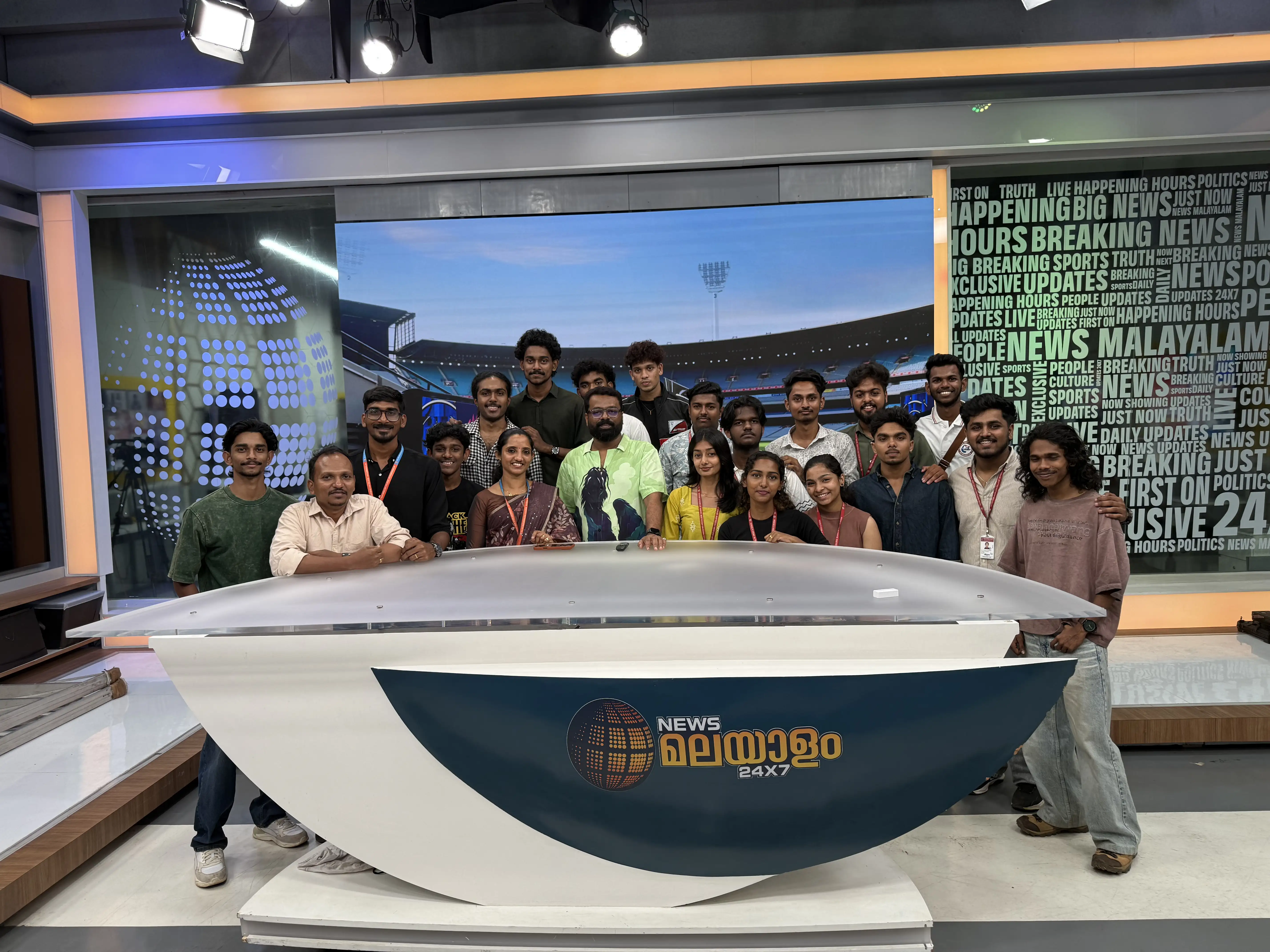 The Department of Multimedia at Yeldo Mar Baselios College of Media & Design (YMBC) orchestrated an exclusive Industrial Visit for Second-Year students to the state-of-the-art News Malayalam Studio and cutting-edge Moleculz Studio on 18th February 2026. This immersive expedition propelled students beyond theoretical frameworks into the pulsating heart of real-world production pipelines, fostering hands-on exposure to broadcast journalism workflows and nonlinear editing suites. At News Malayalam Studio, participants delved into live OB van operations, multi-camera switching paradigms, and Avid Media Composer workflows, witnessing seamless ingest-to-air timelines under high-pressure deadlines. Industry mentors elucidated chroma key compositing techniques and LUT grading protocols, demystifying how raw footage transforms into polished primetime bulletins. Meanwhile, Moleculz Studio unveiled proprietary motion graphics pipelines powered by Adobe After Effects and Cinema 4D, showcasing particle simulations, procedural modeling, and real-time ray-tracing renders that redefine immersive storytelling. This synergy of broadcast and digital production environments equipped students with actionable insights into pre-vis storyboarding, asset management in Shotgun pipelines, and collaborative dailies review processes-bridging academia with media industry. Meaningful networking sessions with sound designers mastering Dolby Atmos mixes and colorists fine-tuning HDR deliverables sparked mentorship connections, igniting passion for career trajectories. YMBC's commitment to experiential learning ensures our multimedia trailblazers graduate not just with degrees, but with production-ready portfolios and unshakeable industry acumen. Stay tuned for more field immersions that level up your craft!