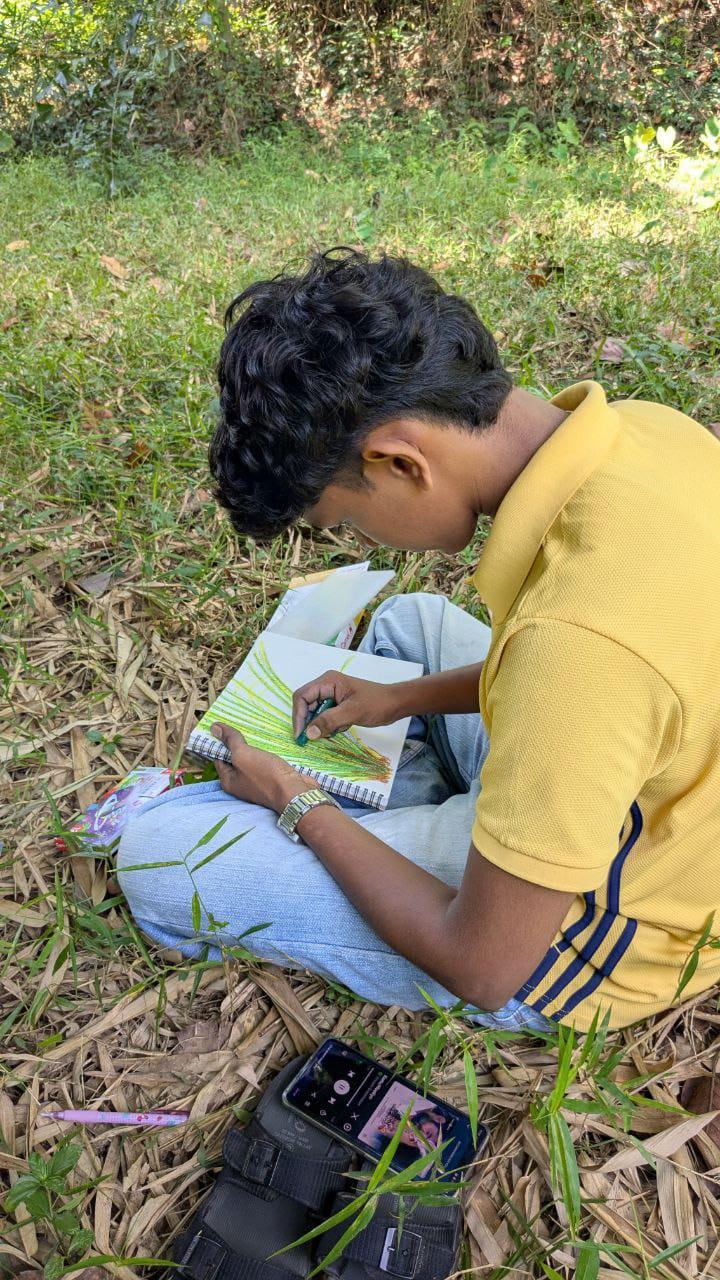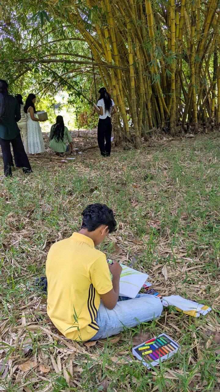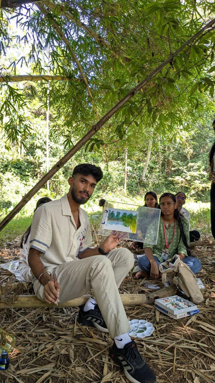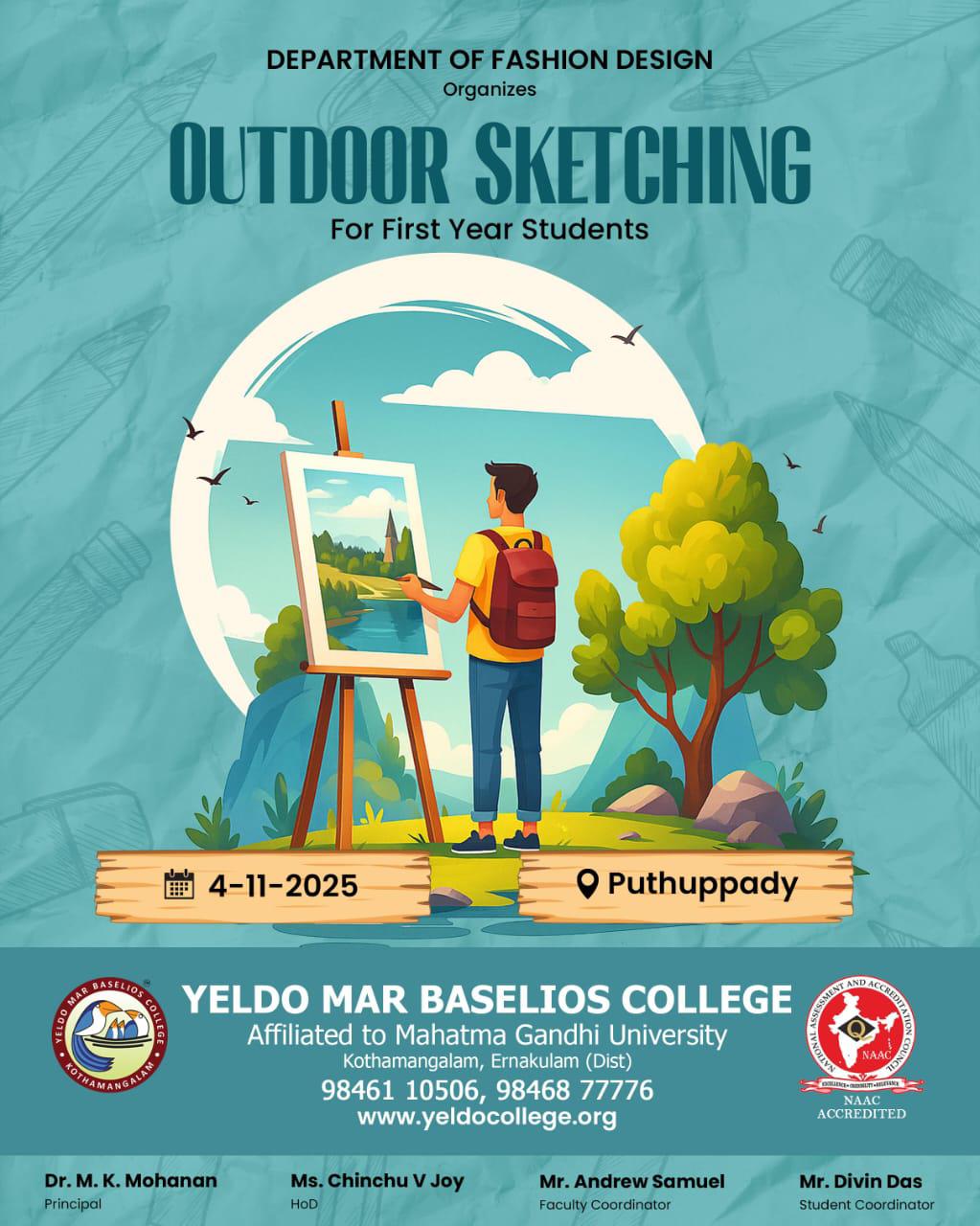 The Department of Fashion Design organized an Outdoor Sketching session for first-year students on 4 November 2025 at Kallingalkadav Puthuppady. The activity encouraged participants to immerse themselves in the natural environment, observing textures, tones, and organic forms that inspire design thinking. Amid the open landscapes, students explored the rich interplay of light and color, translating their observations into expressive sketches. The session aimed to strengthen visual perception, enhance hand-eye coordination, and nurture a designer's sensitivity to natural hues and patterns. Such experiential learning fosters creative exploration and deepens aesthetic appreciation essential for the foundation of aspiring fashion designers.