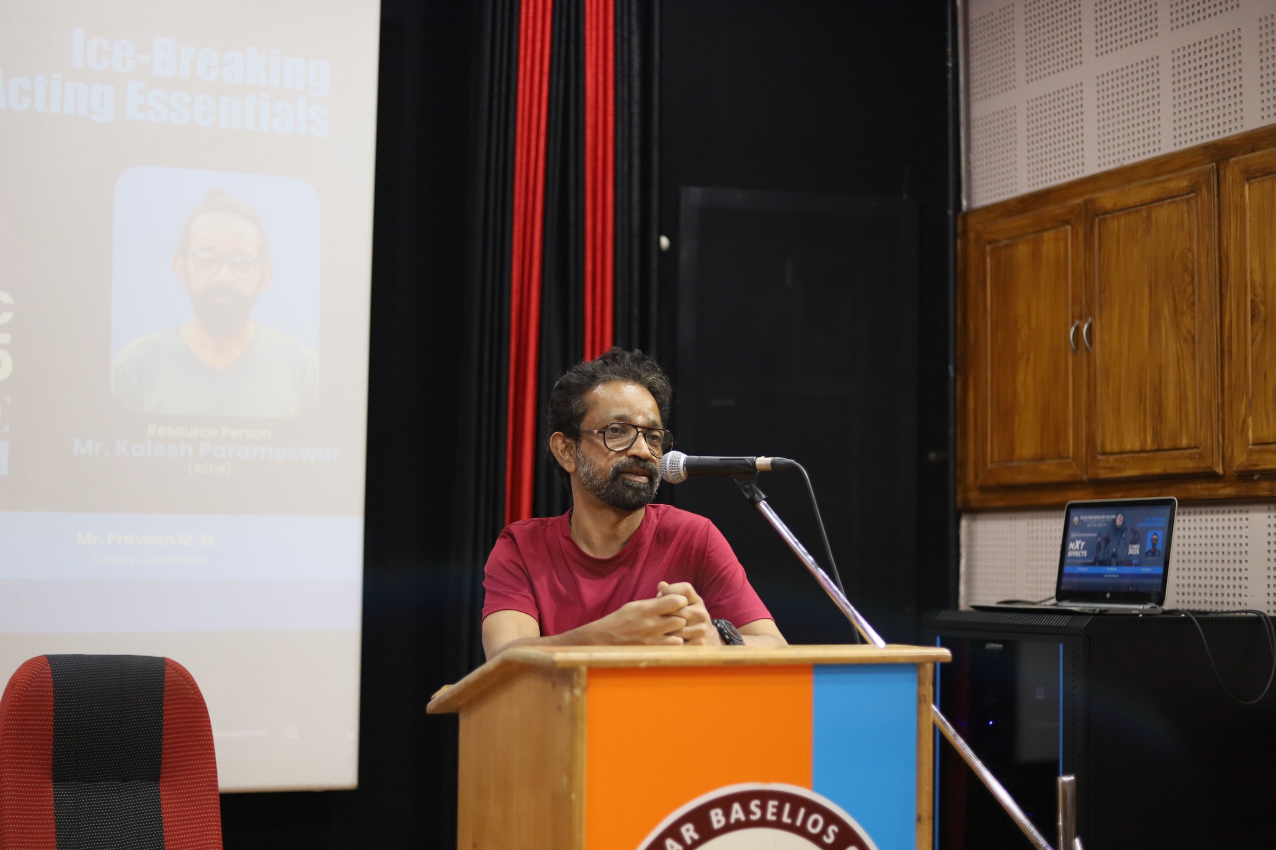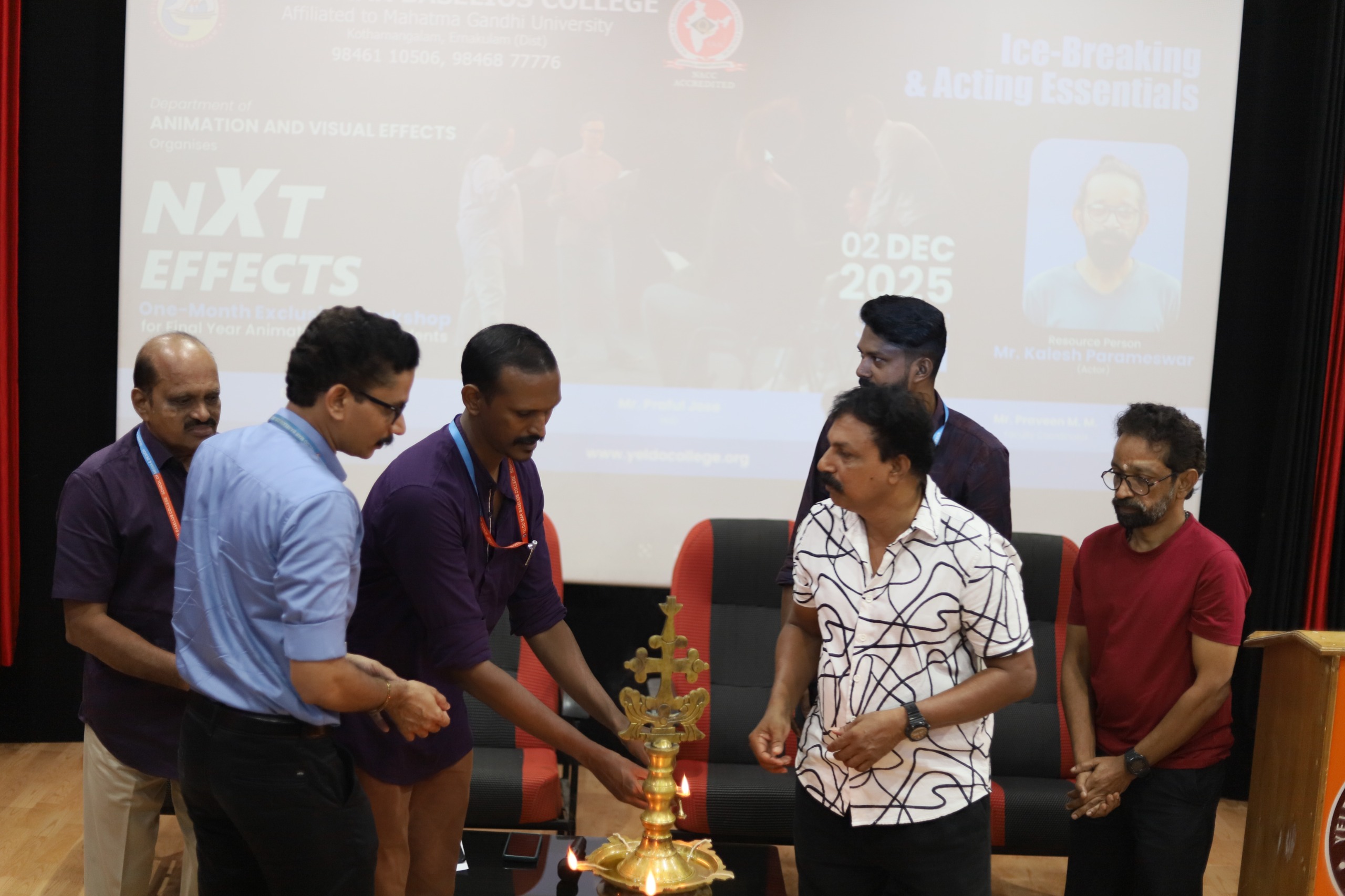 The Department of Animation and Visual Effects is pleased to present the Ice-Breaking & Acting Essentials session, part of the NXT EFFECTS workshop series for final-year Animation & VFX students, held on 02 December 2025 at Yeldo Mar Baselios College. This session was expertly conducted by Mr. Kalesh Parameswar, a respected Actor and Acting Trainer, who guided students through the essential principles of performance. Focusing on foundational acting techniques, the session aimed to deepen participants' ability to infuse animation with realism and emotional depth. By refining their understanding of character expression and storytelling, students enhanced their capacity to bring animated characters authentically to life. This module played a crucial role in developing nuanced acting skills that elevate the overall impact of their creative work. Students gained valuable insights into bringing animated characters to life with greater authenticity and expressiveness. They were overwhelmed by many appreciating the practical approach that helped deepen their storytelling abilities and boost their confidence in character portrayal. This foundational module proved instrumental in equipping students with nuanced acting skills that will significantly enhance their creative work.